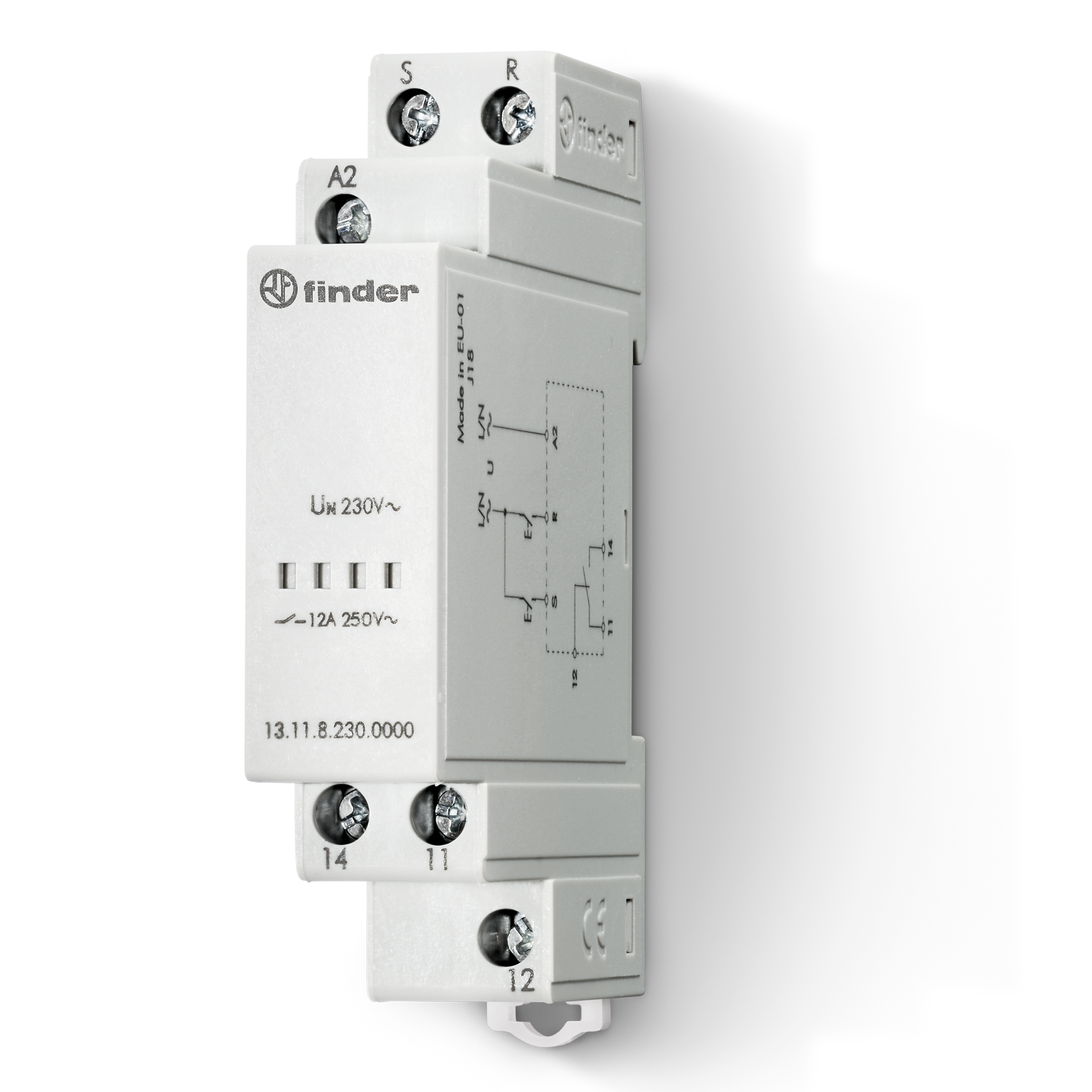 Electronic Relays, Call & Reset relay, 35 mm rail (EN 60715) mount, 17.5 mm wide, 1 pole, 12 A, AC supply version, nominal voltage 230 V, operating from 184 to 253 V, rated power 1.7 VA, AgCdO, Contact circuit: CO, ambient temperature from -10 to +60 °C