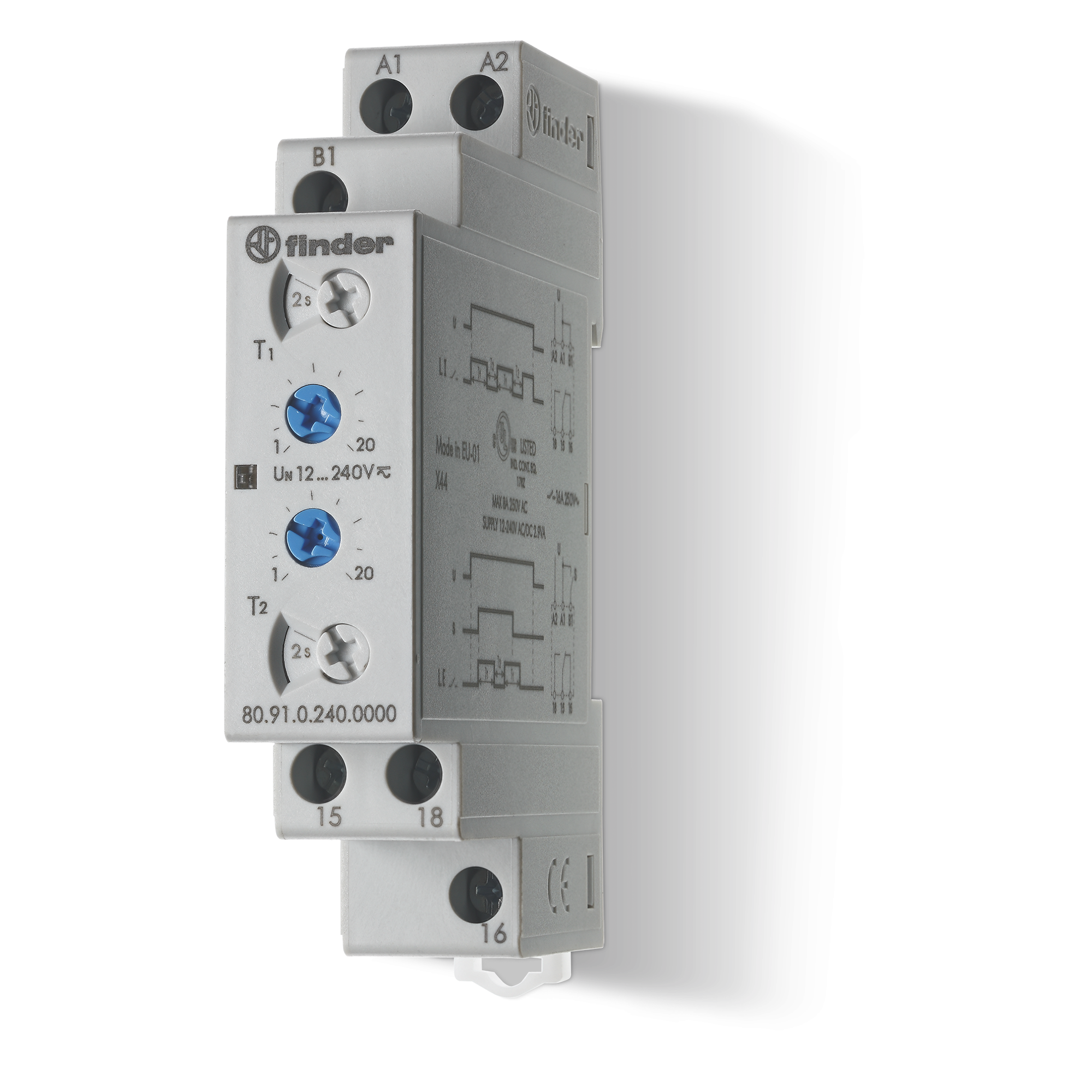 Finder TIMER ASYM RECYCLING (LI), 0.1s – 20h, 1CO 16/30A@250/400VAC,12-240VAC/DC