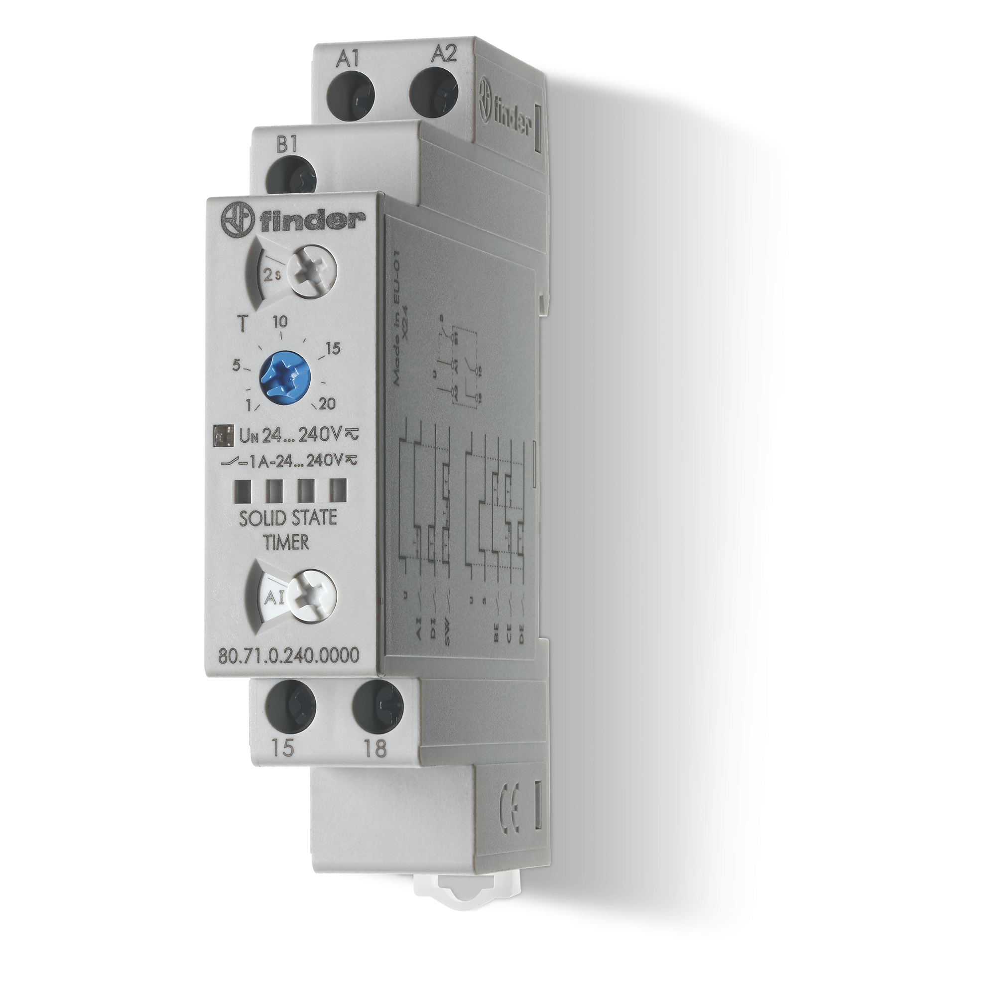 Finder TIMER MULTIFUNCTION (AI,DI,SW,BE,CE,DE), 0.1s – 24h, SSR/1A,12-240VAC/DC