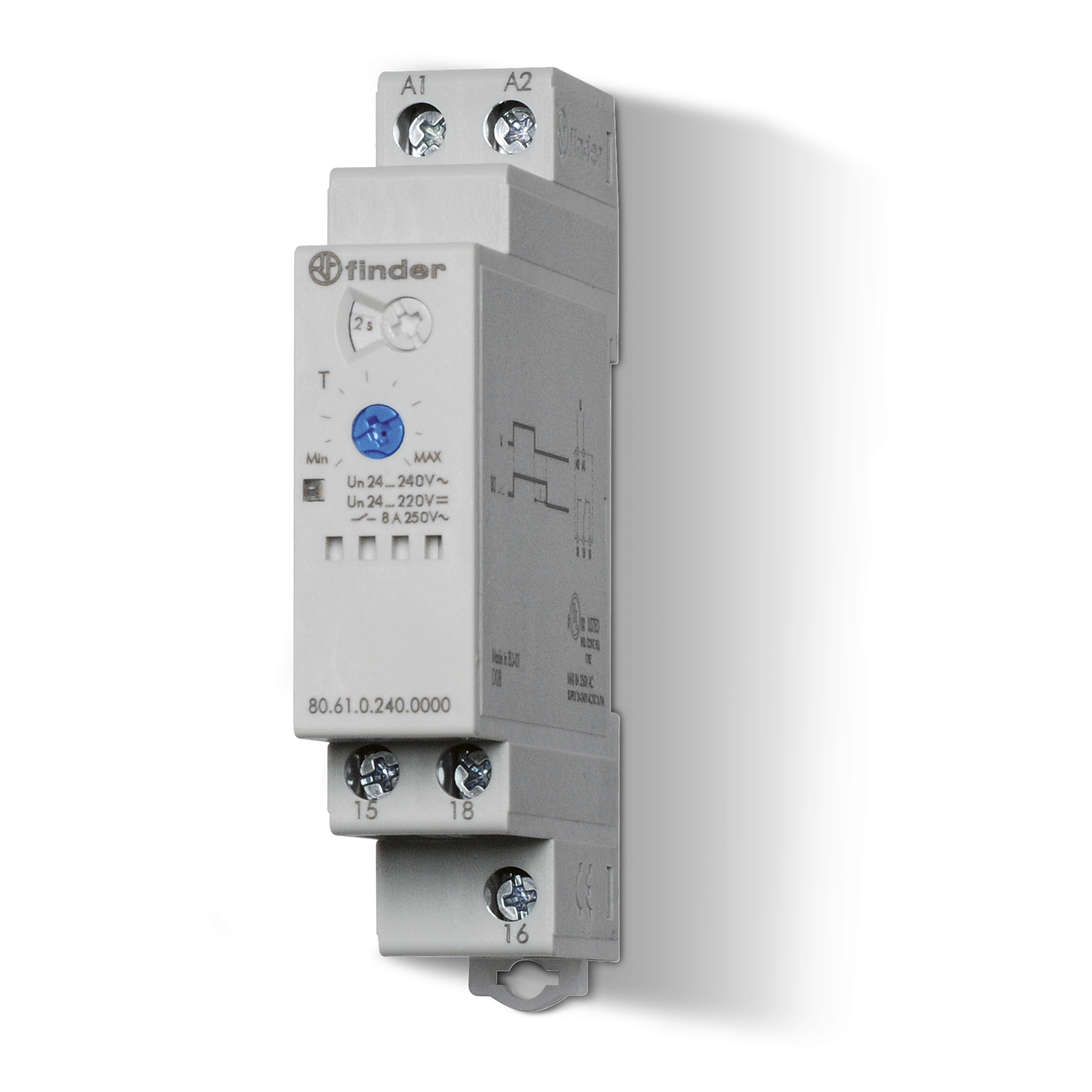Finder TIMER TRUE POWER-OFF DELAY (BI), >3MIN,1CO 8/15A@250/400VAC, 24-240VAC/DC