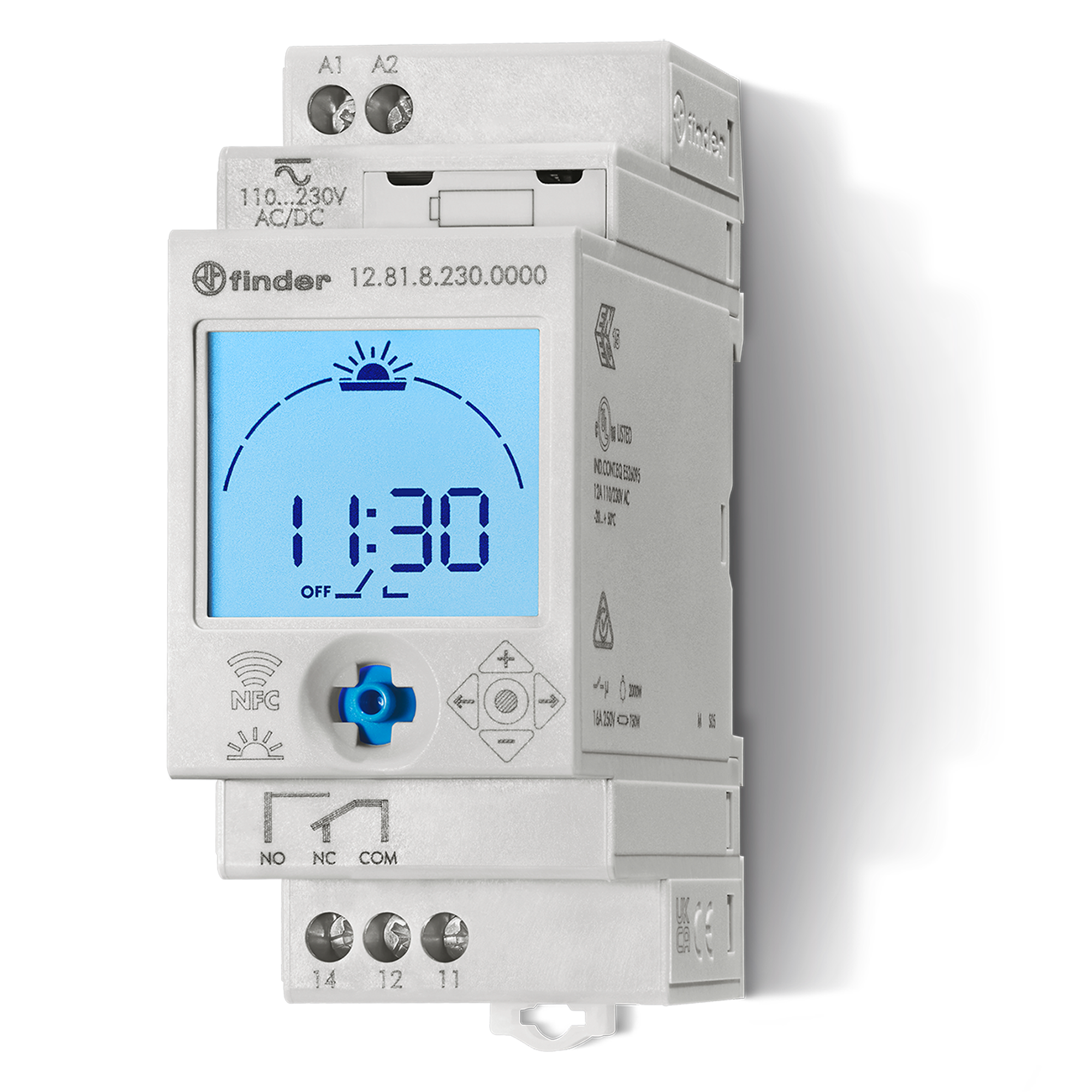 Finder TIMESWITCH, DIGITAL, ASTRONOMIC, NFC, 24hr,1CO16A@250VAC, 230VAC