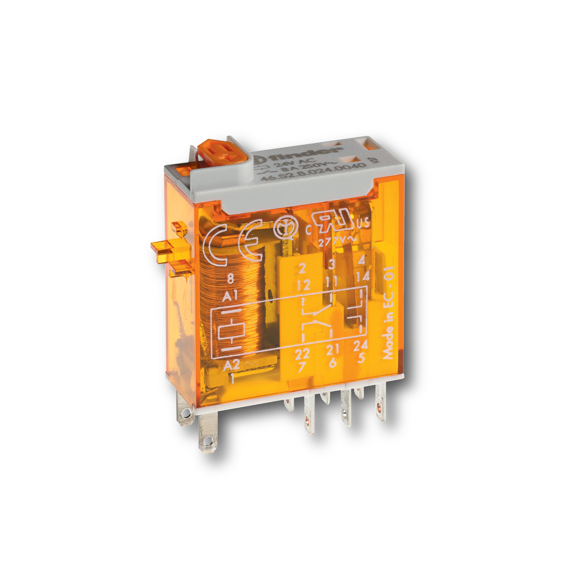 46.52-024-AC: RELAY, LED & TEST BUTTON, 2CO 8A@250VAC, 24VAC COIL