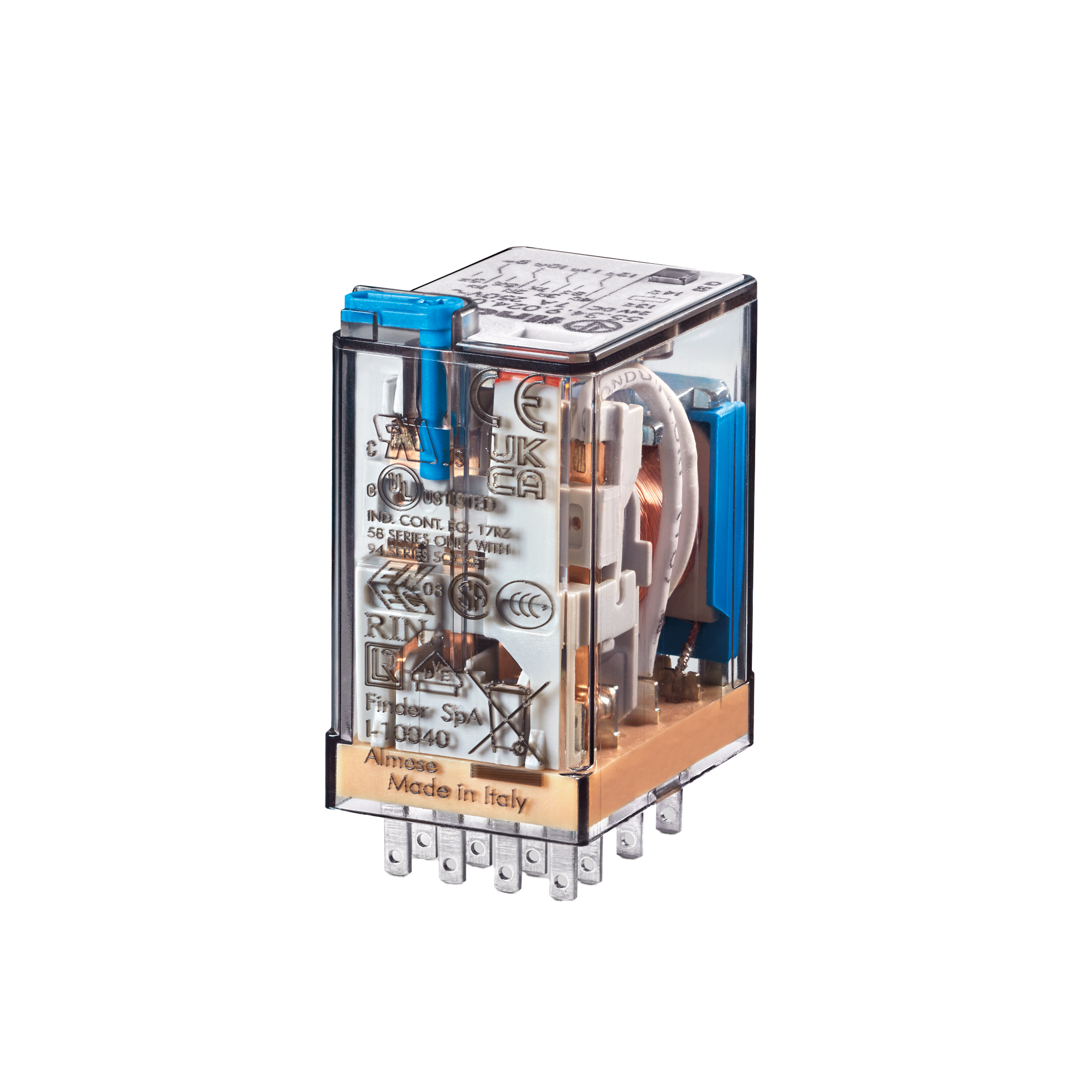 – General purpose plug-in relay. 4 CO 7 A. For use with 94 Series sockets. AC or DC coil. Lockable test button option and mechanical indicator as standard Variant with LED and integrated protection circuit.