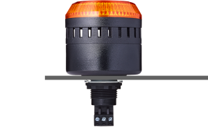 Auer Signal ELG combined buzzer and LED beacon for M22 panel mounting, 65mm diameter. 103dB sound output with flashing LED light. IP65 rated — combines audible and visual alarm in a single compact panel-mount unit.